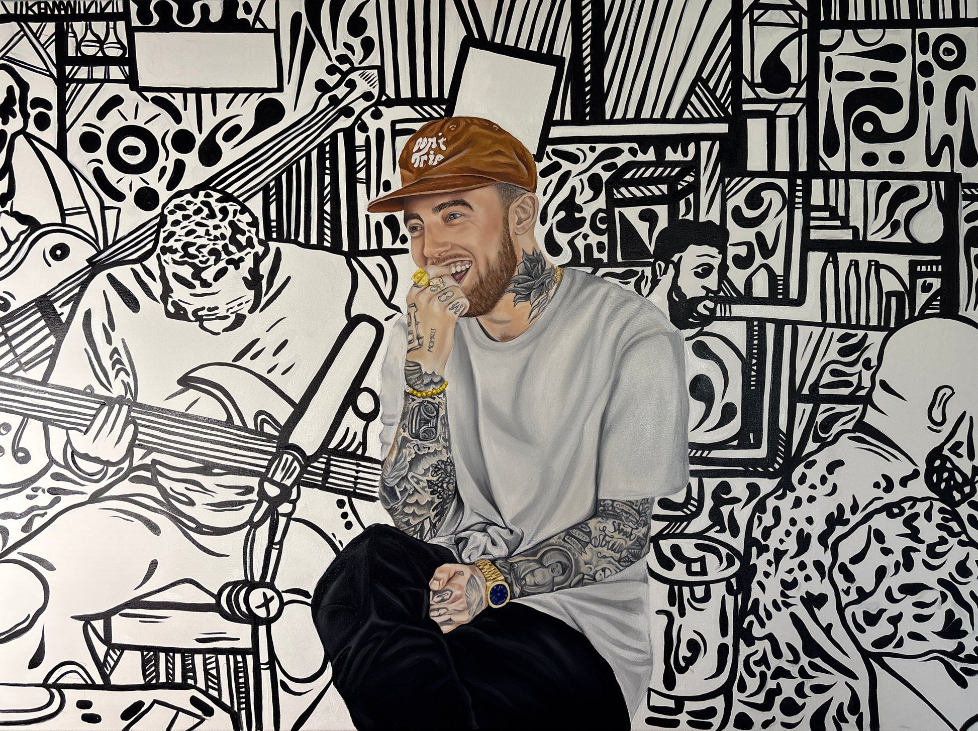 Hand painted 3ftx4ft portrait of the late and great Mac Miller. This piece took 40hrs to complete and is done using oil paints. Most dope.
